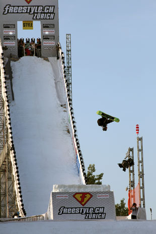 Besser hätte es Petrus nicht mit uns meinen können: Bei einem strahlend blauen Abendhimmel und T-Shirt-Temperaturen ging vor wenigen Minuten auf der Züricher Landiwiese die Snowboard-Qualifikation des freestyle.ch zu Ende. Marko Grilc dominierte vom Anfang bis zum Schluss und verwies die jüngeren Fahrer auf die hinteren Plätze.