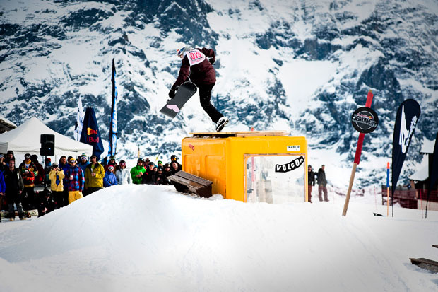 Den Auftakt des Events haben am Freitag acht legendäre Snowboarder, darunter der Lokalmatador Pascal Imhof, Peter Ström (SWE) und die unverkennbare Snowboard-Ikone Jamie Lynn (USA) gegeben. Während einer zweistündigen Jamsession stellten die Legenden ihre Fähigkeiten unter Beweis. Sie wühlten mächtig in ihren Trickkisten und packten unter anderem smoothe Backside 180, Handplants, Backflips und Frontside 360 Nose Bonks aus. Dass sie in der Snowboardszene zum alten Eisen gehören, sah ihnen auf dem Kurs niemand an. Aktiv Contest fährt von den Kult-Snowboardern kaum einer mehr. So auch Jamie Lynn, der seit dem Jahr 2000 keinen Wettkampf mehr gefahren ist. Doch auch er bewies mit einem stylischen Cab 540, dass er das Tricksen mit seinen bald 38 Jahren nicht verlernt hat.
