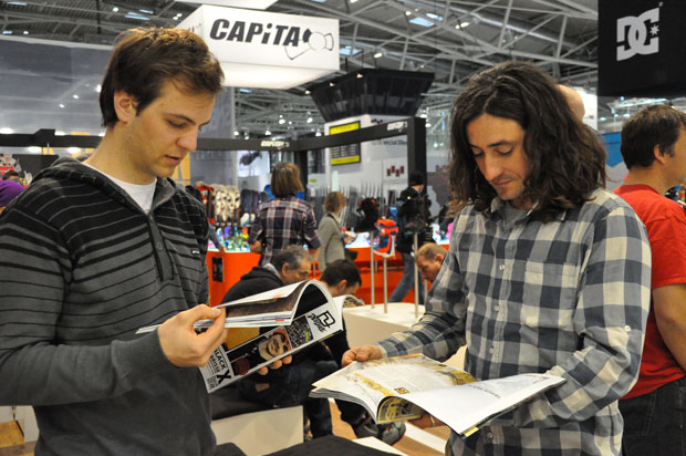 - Martin “Seili” Seiler und Mathieu Perez checken die neueste MBM Ausgabe. Ab 3. Februar im Handel, aber jetzt schon auf der ISPO erhältlich.