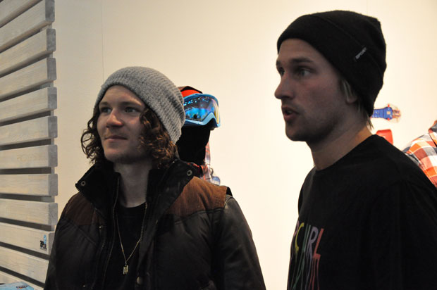 Anders Claesson zeigt Chris Sörman die neueste Rip Curl Kollektion.