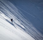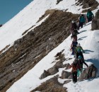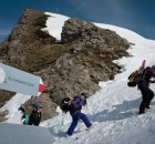 Zurück in der Zivilisation ging es mit der Gondel rauf auf das Fellhorn, um über einen schmalen Grat weiter aufzusteigen. Diese Tour brachte die Gruppe vorbei am Gipfelkreuz auf eine lange Abfahrt hinunter ins Kleinwalsertal, weite Felder und sulzige Hänge machten die letzte Fahrt perfekt.