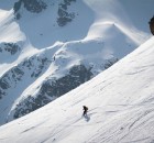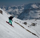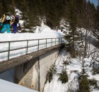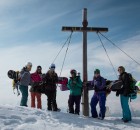 Einige Minuten später droppten die Mädels nacheinander in einen weitläufigen Hang der sie über eine längere Abfahrt in ein unberührtes Tal brachte – eine Szene wie aus dem Bilderbuch. Beste Laune begleitete sie auf dem Fußmarsch zurück zur Liftstation. Zwar ist diese Abfahrt bei Neuschnee sicher noch eindrucksvoller als an diesem Wochenende, doch hatten alle eine gute Zeit und genossen die Ruhe und Einsamkeit fernab der touristenüberfluteten Pisten und Lifte.