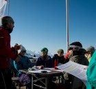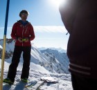 Keine einzige Wolke bedeckte am Morgen den Himmel, perfekte Bedingungen also um den aktiven Teil des Wochenendes starten zu lassen. Mit der Seilbahn ging es rauf zum Nebelhorn, wo Bergführer Bene zum Einstieg die wichtigsten Informationen zum Lawinenlagebericht erläuterte und diesen anhand der umliegenden Berge, gemeinsam mit der Gruppe durchging. Was gilt es zu beachten, welche Exposition haben die einzelnen Hänge und wie ist der täglich veröffentlichte Bericht zu deuten? All dies sind Faktoren die es bei der Einschätzung der aktuellen Lawinensituation zu beachten gilt.
