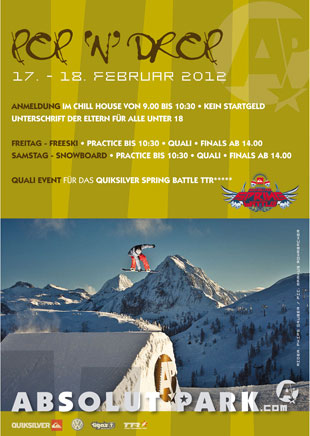 Du wolltest schon immer mal bei einem absoluten Spitzen-Event gegen die besten Slopestyler auf dem ganze Planeten antreten? Dann spitz jetzt mal deine Lauscher. Der Pop’N’Dorp Contest im Absolut Park Flachauwinkl ist offen für jeden und den besten Ridern des Contests winkt eine Einladung zum TTR 5Star Absolut Spring Battle presented by Quiksilver.