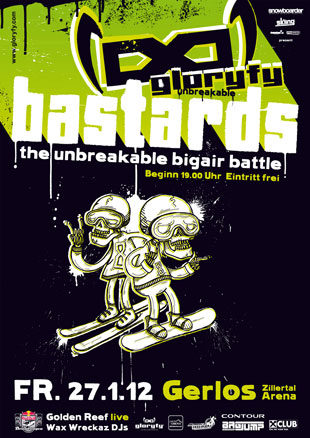 Insgesamt 32 Freestyle-Pros, darunter Vorjahresgewinner Chris Kröll, der schwedische Styler Chris Sörman sowie das deutsche Nachwuchstalent Patrick Cinca, treten bei der gloryfy BASTARDS unbreakable big air battle am 27.01.2012 im Kampf um insgesamt 9.000 Euro Preisgeld an.