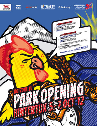 Die Early-Birds unter den Shreddern haben sich den 5. bis 7. Oktober 2012 schon seit Monaten in ihren Kalendern markiert. Denn dann gibt es das erste Mal wieder einen sorgfältig geshapten Park, um die Saison gebührend zu begrüßen, sich ans Board zu gewöhnen, mal wieder Airtime zu spüren und neue Tricks sowie die neuesten Boards auf echtem Schnee anzutesten. Diese Faktoren sind natürlich die Hauptmotivation für die Reise zum Hotzone.tv Park Opening in Hintertux. Aber auch das Rahmenprogramm mit Pirate Videopremiere und abgefahrenen Partys meißeln einem vor lauter Vorfreude einen dicken Grinser ins Gesicht…