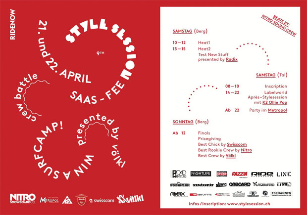 Die Style Session geht in die nächste Runde. Für das Crew Battle vom 18.-22. April in Saas-Fee haben sich schon jetzt zahlreiche bekannte Snowboard-Teams wie die Nitro Road Warriors angekündigt. Natürlich sind auch eure Buddies und ihr herzlich willkommen, um euch mit den Pros um diese wertvollen Preise zu batteln: