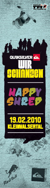 Wer letztes Jahr beim Happy Shred nicht dabei sein konnte, hat am 19. Februar 2011 wieder die Möglichkeit. Der Crystal Ground zeigt sich beim diesem Contest wieder von seiner besten Seite und wird mit einem grandiosen Setup für alle das Richtige zum shredden dabei haben. Ob mit Ski, Snowboard oder zu Fuß – es lohnt sich auf alle Fälle vorbeizuschauen. Egal ob Ihr selbst um den Sieg mit shredded oder einfach den Slopestyle Künstlern bei der Arbeit zuschaut.