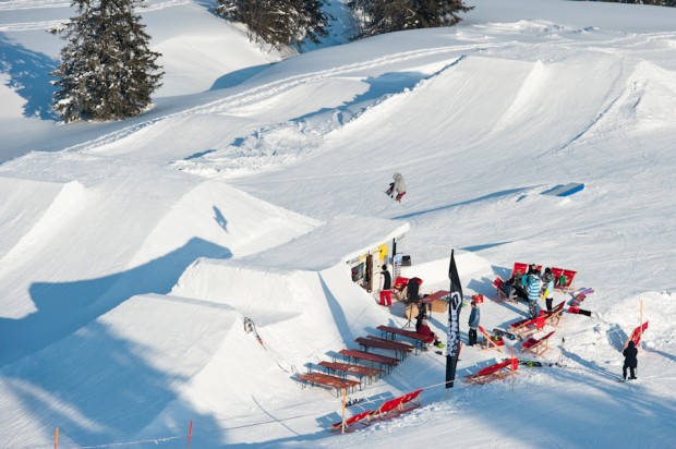 Sonnenschein und ein sauber hergerichteter Park boten am 11. und 12. Februar ideale Vorraussetzungen für die legendäre Beers’N’Burger Session im Snowpark Grasgehren. Für das Event wurde der Wohnwagen von Salomon Snowboards zu einem stylischen Step-UP-Step-Down umgebaut und mit Liegenstühlen und Biergarnituren das richtige Flair für gemütliches Beisammensein mit Rock’n’Roll, Bier und Burger hergestellt.