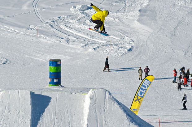 Bei der dritten Auflage des LIVINGROOM Slopestyles zeigte sich der Snowpark von seiner besten Seite. Auch das Wetter spielte mit und so fanden fast 70 Rider darunter 12 Mädels den Weg hinauf auf den Hochkeil. Schon morgens im Training ging es ordentlich zur Sache und das Niveau stieg von Run zu Run.