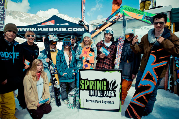 Beste Stimmung, ein toller Snowpark und viel Sonnenschein: Das legendäre Freestyle-Camp SPRING IN THE PARK auf Deutschlands höchstem Berg war wieder ein voller Erfolg! Täglich tummelten sich zwischen 300 und 400 Freestyler im Terrain Park Zugspitze am Wetterwandeck, um sich Tipps und Tricks von K2-Profis zu holen, das neueste Material von K2 zu testen oder einfach nur in der Sonne bei einer leckeren Bratwurst zu chillen. Viele strahlende Gesichter gab es vor allem nach den drei Contests, bei denen die Teilnehmer im Laufe des Camps ihre Fortschritte unter Beweis stellen konnten.