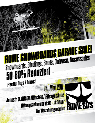 Der Frühjahrsputz im Münchner Rome-Showroom ist durch und es gibt jede Menge Stuff, der unters Volk gebracht werden muss. Deshalb sind alle herzlich eingeladen, um am Samstag dem 14. Mai in der Jahnstr. 3 auf Schnäppchenjagt zu gehen.