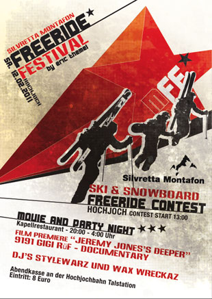 Nach zweijähriger Abstzinenz meldet sich das Freeride Festival am Hochjoch (A) wieder zurück! Das ehemalige Qualifier-Event der Freestyle World Tour findet am 12.02.2011 unter der Schirmherrschaft von Eric Themel und unabhängig von großen Contest-Serien statt.