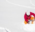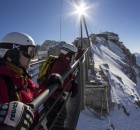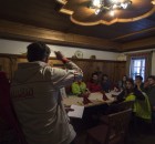 Als erstes auf der To-do-Liste stand, dass die 16 Teilnehmer sich ein Pyua Outfit für das Wochenende aussuchen und dieses auf Herz und Niere testen durften. Der nächste Programmpunkt war eine Einführung mit dem Bergführer Christian, der uns das LVS-Gerät erklärte und uns den Ablauf der nächsten Tage erläuterte. Danach durften wir uns noch Testboards, gestellt von Rossignol, für das Wochenende ausleihen. Der erste Tag endete mit einem gemeinsamen Abendessen in großer Runde. Es gab ein Pfännchen Kässpätzle und für ganz hungrige noch Kaiserschmarn.