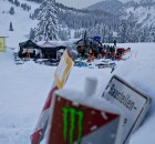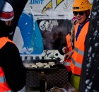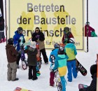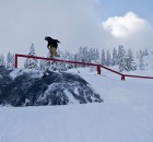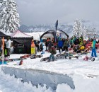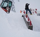Wie es für eine Baustelle üblich ist, wurden auch am Samstag vormittag weitere Obstacles aufgebaut, während sich die Leute an der Parkbase einfanden, um bei gemütlicher Atmosphäre und Musik von den Haptic Invaiders zu chillen, ein paar Runs im gefallenen Powder zu ziehen und sich auf das Event Set Up einzufahren.