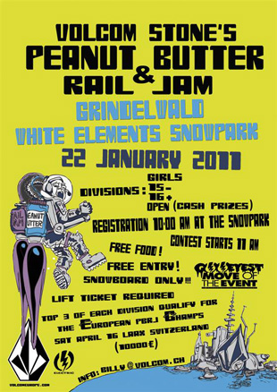 Kommenden Samstag landet das PBRJ-Raumschiff in Grindelwald (CH)! Die Anmeldung für den offenen Jib-Contest startet ab 10:00 Uhr. Für alle registrierten Rider haben die Veranstalter freie Verpflegung organisiert. Den Gewinnern winkt eine Wildcard für die European PBRJ Championships in Laax (CH), natürlich inklusive Verpflegung und der Chance insgesamt 10.000 EUR Preisgeld abzuräumen!