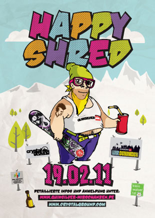 Bald ist es soweit. Die Ruhepause ist vorbei, denn am 19. Februar 2011 zieht die Quiksilver Wir Schanzen weiter zum Happy Shred ins Kleinwalsertal. Im Crystal Ground Snowpark wartet ein super kreatives Setup darauf ordentlich geshreddet zu werden.