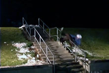 Während auch bei erfahrenen Skateboardern mit Snowskates normalerweise bei einem simplen Shove-It schluss ist, stellt der Junge mit seinem Snowskate stylishe Fs Nosebluntslides und andere Schweinereinen in den Park von Northstar. Vielleicht haben wir uns mit dem Inline-Skaten ja doch geirrt…