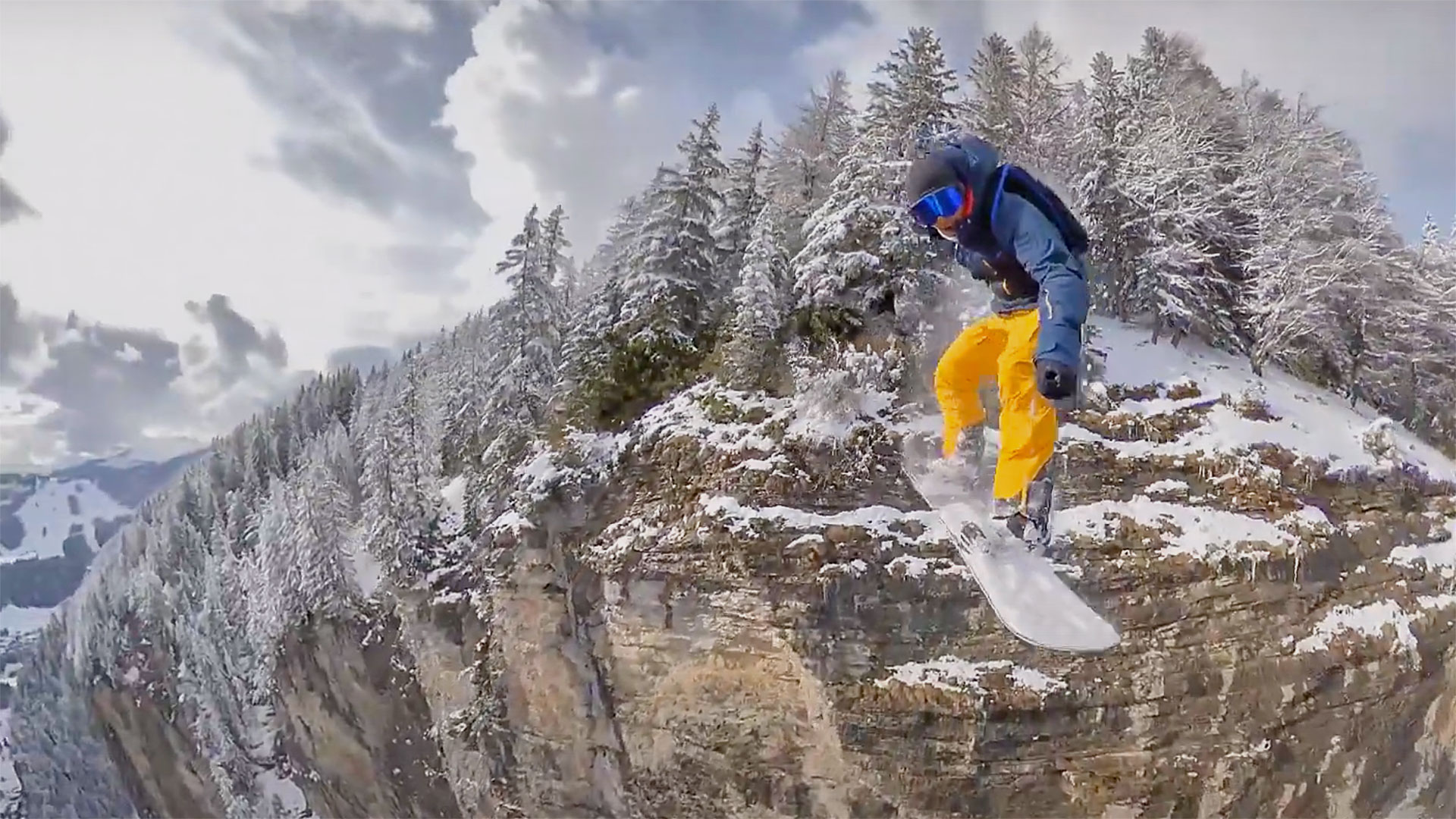 Wer diesen Snowboard Base-Jump von Christophe Tricou sieht, sollte nicht schreckhaft sein.