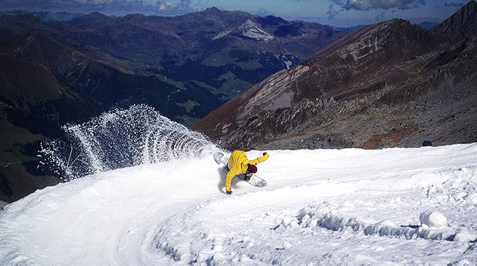 Elias Elhardt, Michi Schatz, Dominiki Brunner, Simon Pircher, Klaus Lotto und Samy Kautner drehen ein paar Runden beim Hintertux Opening 2014. Michi Schatz rastet ein...
