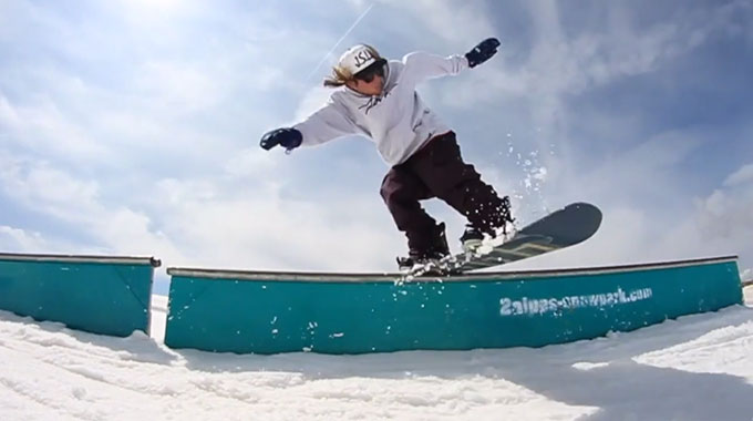 Volcom Fahrer Marc Swoboda ist vom Sliden gar nicht abzuhalten. Unzählige Rails und Obstacles beugen sich dem Shredd-Wahn des Österreichers.