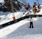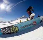 9 BilderBereits am Samstag ging im Snowpark der Volcom Stubai Snakepit über die Bühne. Dreißig Rider wie Elias Elhardt (GER), Peter König (AUT), Denis Leontyev (RUS) oder Jesse Augustinus (NED) hatten auf einem speziell gebautem Setup bestehend aus Slalom-/Banked-Kurs mit anschließenden Jib-Feature sichtlich Spaß. Letztlich überzeugte Marc Swoboda (AUT) mit einer Kombination aus race-tauglicher Slalomtechnik und einem perfekten Switch Backside Lipslide auf dem Downrail am meisten. Auf den Plätzen zwei und drei landeten Arthur Longo (FRA) und Vorjahressieger Simon Pircher (AUT).