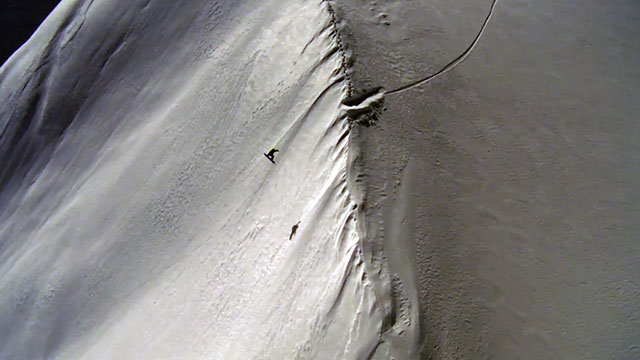 Hier mal wieder ein Beispiel dafür, dass man sich im offenen alpinen Gelände immer gut in Acht nehmen sollte. Auch wenn der Hang vermeintlich sicher wirkt, und schon ein ander Rider vor einem am gleichen Tag an exakt der gleichen Stelle abgefahren ist, kann es immer passieren, dass sich durch einen Sturz – manchmal auch nur durch eine falsche Bewegung – ein Schneebrett löst.