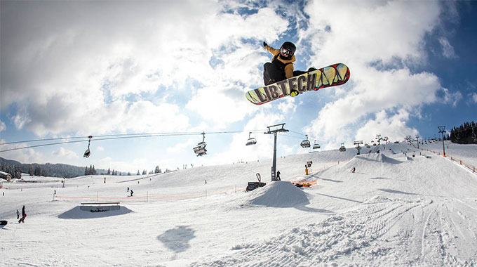 Die Feldberg Locals Luis Eckert, Raphael Bärmann, Matthias Klinger und Lukas Kortmann haben sich getroffen, um ihre Home Base gemeinsam zu shredden.