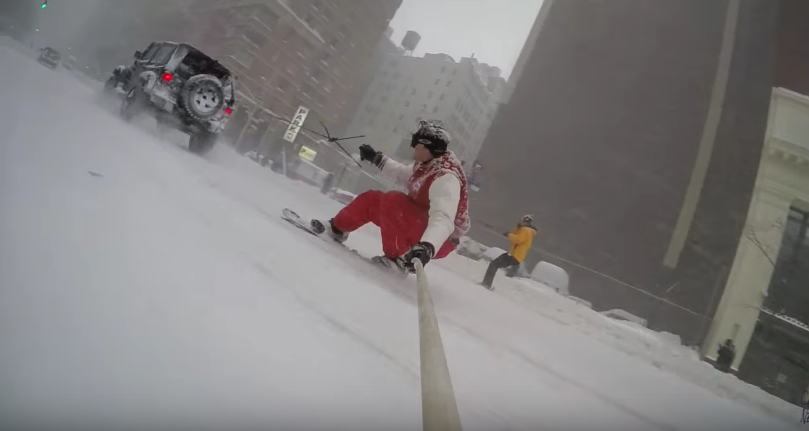 Die einzig richtige Lösung zu einem Schneesturm in der Stadt.