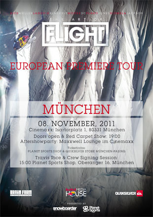 Über Travis Rice’ neuestes Werk “The Art of Flight” muss wirklich nicht mehr viel gesagt werden. Ein Millionenbudget wurde raus geballert und das Ergebnis ist der wohl aufwändigste und hochwertigste Snowboardfilm aller Zeiten! Ab 8. November geht der Film in Europa auf Premierentour und der erste Stopp führt Travis Rice und seine Gefolgschaft nach München. In den Tagen danach geht’s für die Crew weiter nach Innsbruck und Wien.
