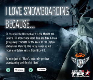 Um die Neuauflage des Air & Style Munich zu feiern, verlost die TTR zwei Tickets für das am Samstag stattfindende Bigair-Event. Um zu gewinnen müsst ihr nichts weiter tun, als auf der TTR-Facebook-Page vorbeizuschauen und den Jungs und Mädels mitzuteilen, warum ihr Snowboarden so sehr liebt. Wir sehen uns im Olympiastadion!