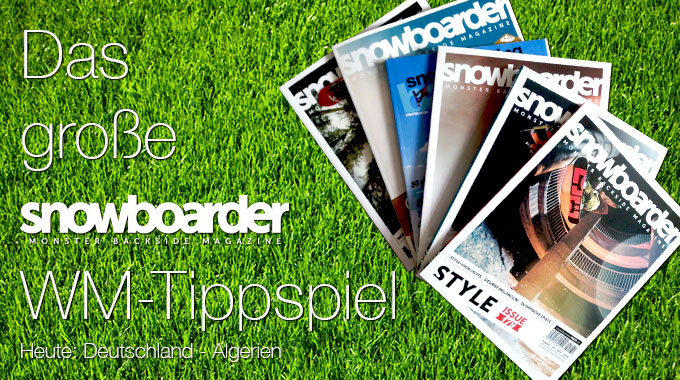 Jetzt beim WM-Tippspiel mitmachen und ein snowboarderMBM Jahresabo gewinnen! So ganz können auch wir uns dem WM-Wahnsinn nicht entziehen! Um 22:00 Uhr tritt Jogis Elf gegen das Nordafrikanische...