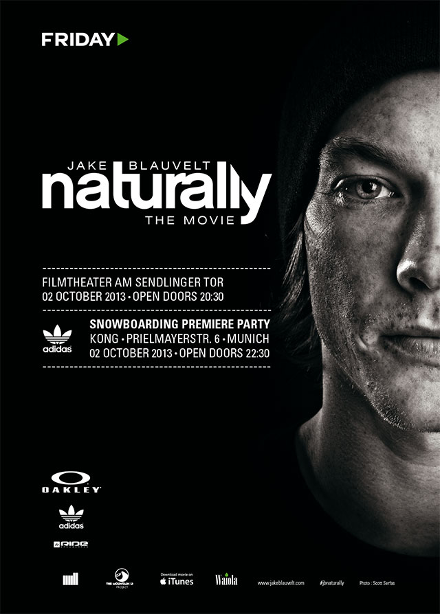 Am Mittwoch feiern Jake Blauvelt und adidas Snowboarding in München die Deutschland-Pemiere von Jakes neuem Film “Naturally”. Los geht’s um 20:30 im Filmtheater Sendlinger Tor (Sendlinger-Tor-Platz...